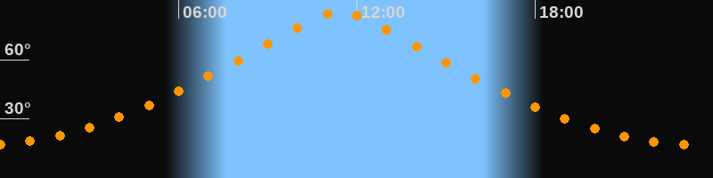 | Höchster Stand (Kulmination) | 11:25 Uhr (h = 84,4°) |