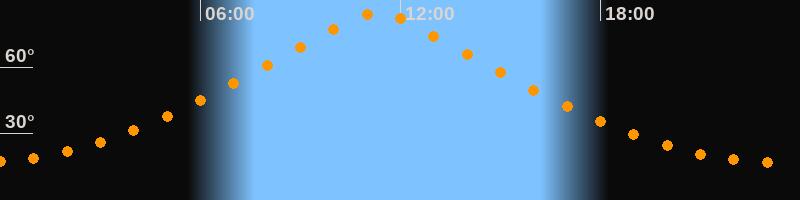 | Höchster Stand (Kulmination) | 11:18 Uhr (h = 84,4°) |
