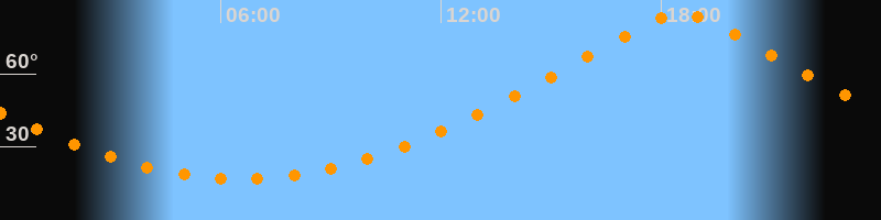 | Höchster Stand (Kulmination) | 18:32 Uhr (h = 84,4°) |