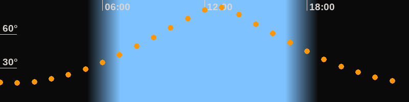 | Höchster Stand (Kulmination) | 12:42 Uhr (h = 84,4°) |