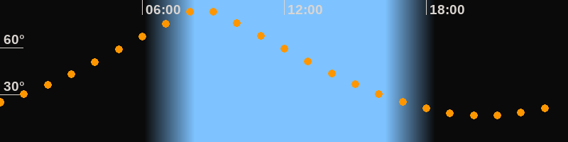 | Höchster Stand (Kulmination) | 08:31 Uhr (h = 84,4°) |