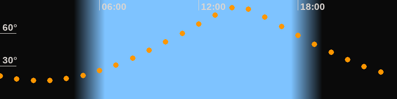 | Höchster Stand (Kulmination) | 14:22 Uhr (h = 84,4°) |
