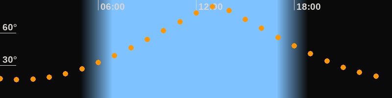 | Höchster Stand (Kulmination) | 13:07 Uhr (h = 84,4°) |