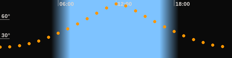 | Höchster Stand (Kulmination) | 12:12 Uhr (h = 84,4°) |