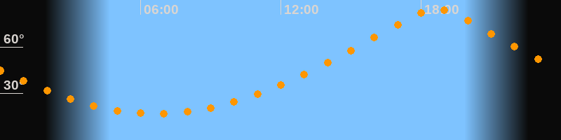 | Höchster Stand (Kulmination) | 18:39 Uhr (h = 84,4°) |