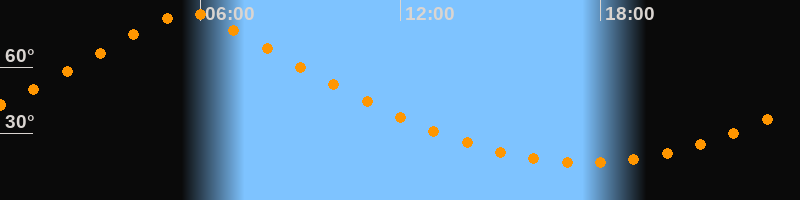 | Höchster Stand (Kulmination) | 05:37 Uhr (h = 84,4°) |