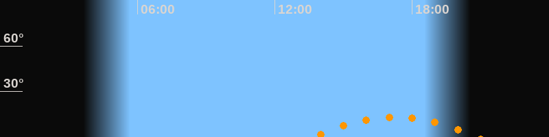 | Aufgang | 13:37 Uhr im Südosten (αAz = 132,8°) |