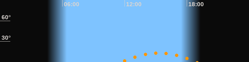 | Aufgang | 11:40 Uhr im Südosten (αAz = 132,8°) |