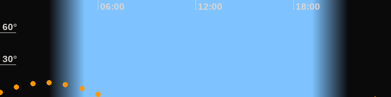 | Untergang | 06:30 Uhr im Südwesten (αAz = 227,2°) |