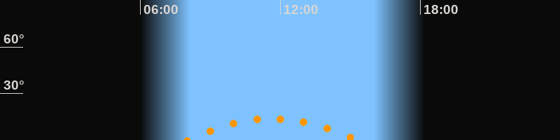 | Untergang | 15:21 Uhr im Südwesten (αAz = 228,2°) |