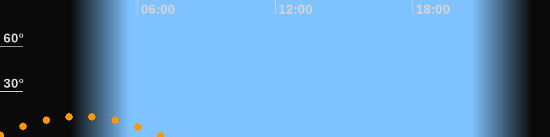 | Untergang | 07:11 Uhr im Südwesten (αAz = 228,2°) |