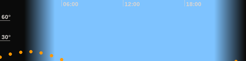 | Untergang | 06:25 Uhr im Südwesten (αAz = 228,2°) |