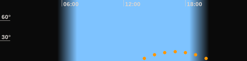 | Aufgang | 13:16 Uhr im Südosten (αAz = 131,8°) |