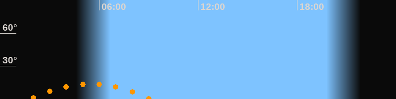 | Untergang | 09:08 Uhr im Südwesten (αAz = 228,2°) |