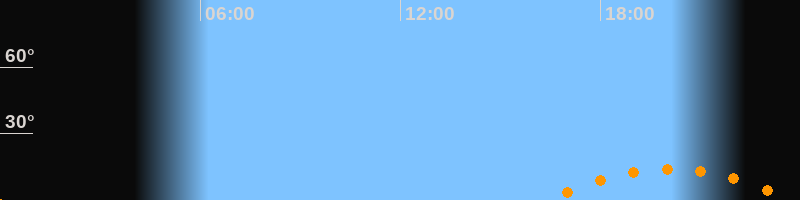 | Aufgang | 16:22 Uhr im Südosten (αAz = 131,8°) |
