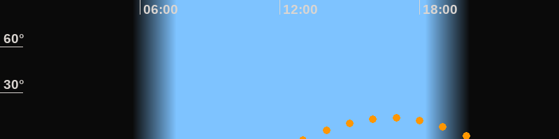 | Aufgang | 13:00 Uhr im Südosten (αAz = 131,8°) |