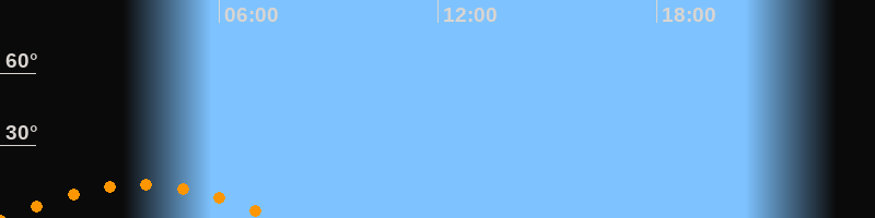 | Untergang | 07:31 Uhr im Südwesten (αAz = 228,2°) |