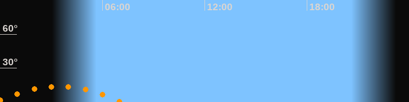 | Untergang | 07:07 Uhr im Südwesten (αAz = 228,2°) |