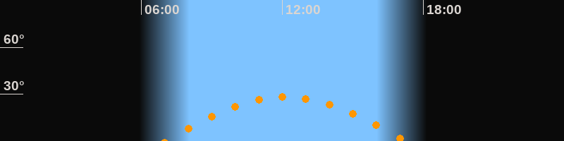 | Höchster Stand (Kulmination) | 12:08 Uhr (h = 28,2°) |