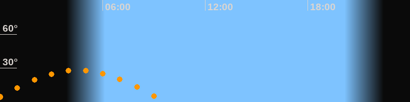 | Untergang | 09:40 Uhr im Westen (αAz = 253°) |