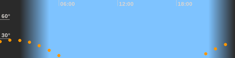 | Untergang | 06:29 Uhr im Westen (αAz = 253°) |