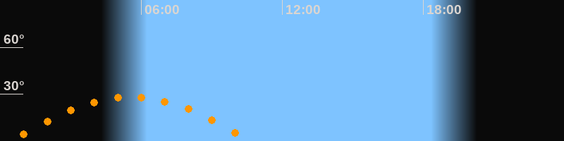 | Untergang | 10:41 Uhr im Westen (αAz = 253°) |