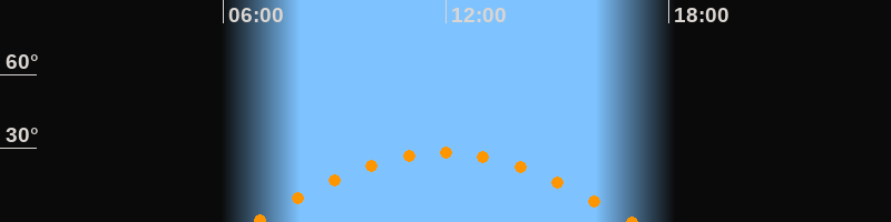 | Höchster Stand (Kulmination) | 11:56 Uhr (h = 28,2°) |