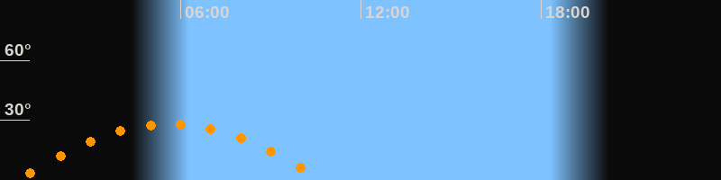 | Untergang | 10:46 Uhr im Westen (αAz = 253°) |