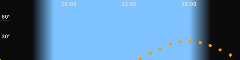 | Höchster Stand (Kulmination) | 18:47 Uhr (h = 28,2°) |