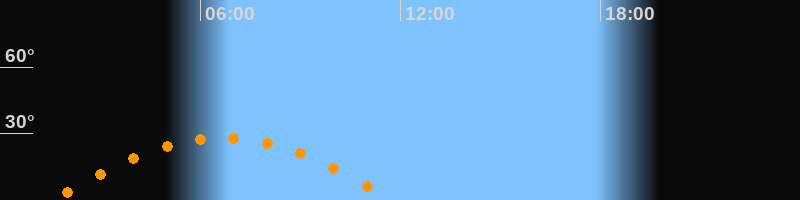 | Höchster Stand (Kulmination) | 06:40 Uhr (h = 28,2°) |