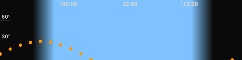| Untergang | 09:10 Uhr im Westen (αAz = 253°) |
