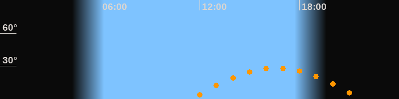 | Höchster Stand (Kulmination) | 16:35 Uhr (h = 28,2°) |