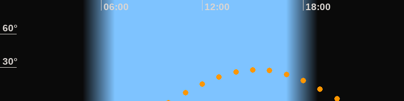 | Höchster Stand (Kulmination) | 15:12 Uhr (h = 28,2°) |
