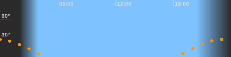 | Untergang | 04:36 Uhr im Westen (αAz = 253°) |