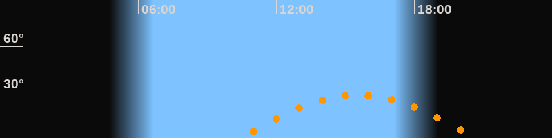 | Höchster Stand (Kulmination) | 15:33 Uhr (h = 28,2°) |