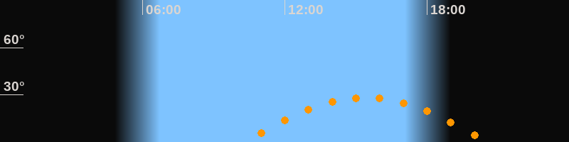 | Höchster Stand (Kulmination) | 15:25 Uhr (h = 28,2°) |