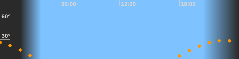 | Aufgang | 17:23 Uhr im Osten (αAz = 107°) |