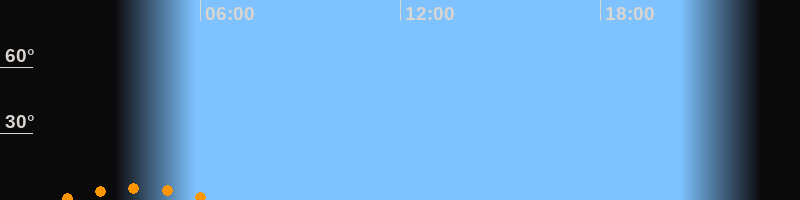 | Untergang | 06:28 Uhr im Südwesten (αAz = 209,3°) |