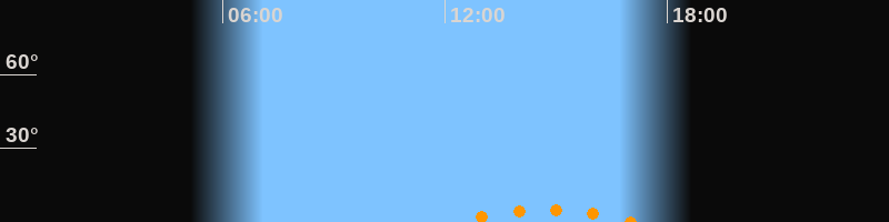 | Aufgang | 12:19 Uhr im Südosten (αAz = 150,7°) |