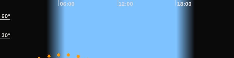 | Untergang | 08:46 Uhr im Südwesten (αAz = 209,3°) |