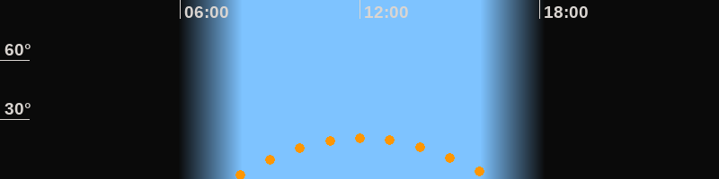 | Höchster Stand (Kulmination) | 12:05 Uhr (h = 20,9°) |