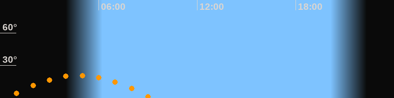 | Untergang | 09:15 Uhr im Südwesten (αAz = 240,9°) |