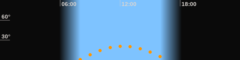 | Höchster Stand (Kulmination) | 12:17 Uhr (h = 20,9°) |