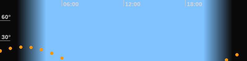 | Untergang | 06:39 Uhr im Südwesten (αAz = 240,9°) |