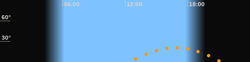 | Aufgang | 12:22 Uhr im Südosten (αAz = 119,1°) |