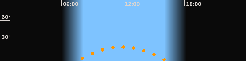 | Aufgang | 07:24 Uhr im Südosten (αAz = 119,1°) |