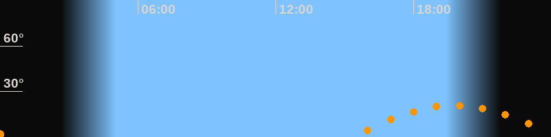 | Aufgang | 15:20 Uhr im Südosten (αAz = 119,1°) |