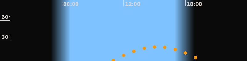 | Aufgang | 10:49 Uhr im Südosten (αAz = 119,1°) |