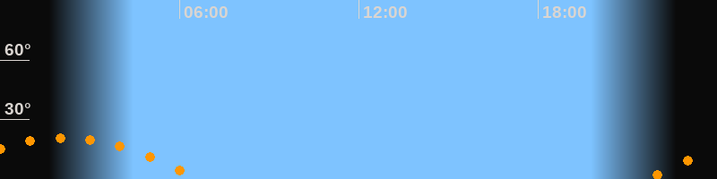 | Untergang | 06:37 Uhr im Südwesten (αAz = 240,9°) |