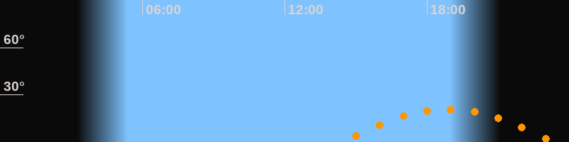| Aufgang | 14:26 Uhr im Südosten (αAz = 119,1°) |